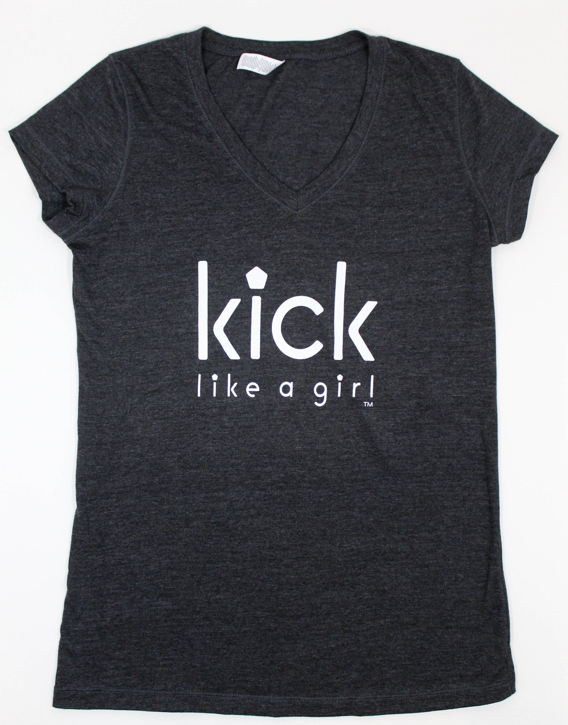 Introducing our Women's V-Neck - a stylish and comfortable wardrobe essential for all the moms out there. Its modern fit and short sleeves make it perfect for wearing on the sidelines while cheering on your favorite athlete or team. The "Kick Like A Girl" print on the front is a nod to the beautiful game of soccer and showcases your love for the sport. This V-Neck is a mom favorite and can be sized up for a looser fit. Add it to your collection today and elevate your casual look
